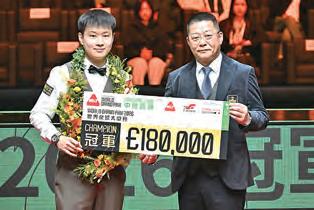 趙心童對能夠在港封王感興奮, 因第一次來香港參加排名賽,冠軍的 感覺不一樣,給他好大的信心,也令 他在之後的比賽能夠更加放鬆。