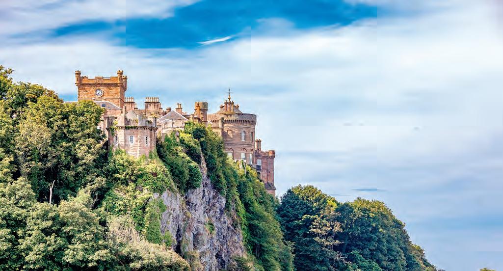 卡爾津城堡(Culzean Castle)的海岸景觀融合了中世紀、格魯吉亞式和哥特復興式建築風格,四周圍繞著如詩如畫的花園和公園綠地的設 計,為這驚心動魄的懸崖風景增色不少。(Shutterstock)