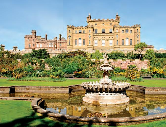 城堡的室內裝飾也由亞當負責。所 有的房間均採古典風格設計,能俯瞰亞 爾郡海岸的壯麗景色;橢圓形樓梯和 圓形交誼廳尤其吸引人佇足;此外, 還有隱藏的洞穴、正式花園(formal gardens,布局整齊的花園)、水果溫室 和天鵝池塘。
