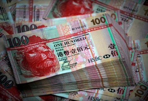 photo shows HSBC 100 Hong Kong dollar banknotes in Hong Kong on