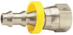 • Las conexiones Push-On se sujetarán correctamente a la manguera Push-On solo cuando se empuje la manguera totalmente hasta el fondo, en el extremo cortado de la manguera oculto por la tapa de plástico amarillo.