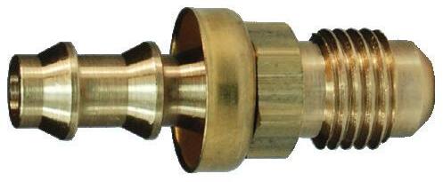 3. Inserte la conexión Push-On en la manguera hasta que la primera barba del vástago esté en la manguera.