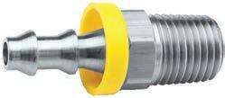 Se recomiendan conexiones reutilizables para aplicaciones con manguera de aire de baja presión. Ofrecen una conexión de manguera más durable y fácil de reparar. Presión máxima de trabajo: 250 PSI a temperatura ambiente (70°F) (21ºC). Precaución: Verifique con exactitud el D.E. y D.I. de la manguera antes de ordenar.