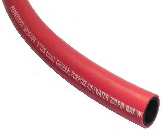 Cover - Smooth, red, abrasion, weather, and ozone resistant rubber Branding - FLEXTRAL AR10-100 1” (25.4mm) GENERAL PURPOSE AIR/WATER 200 PSI MAX WP