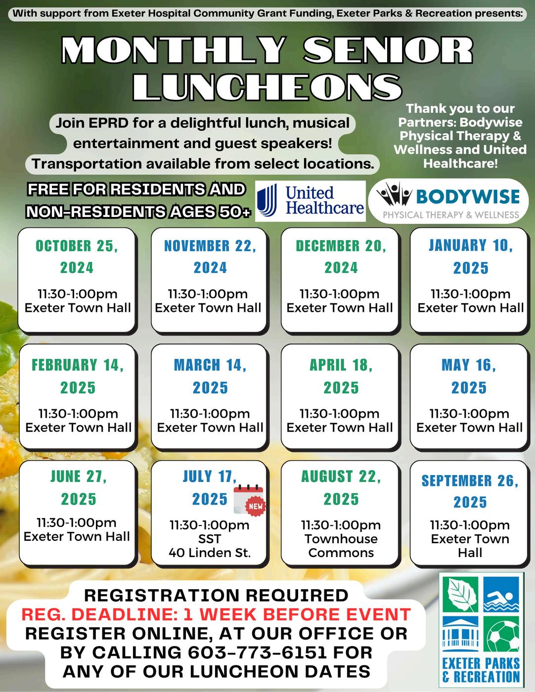 Registration: To register you can visit us in person, call the Recreation Office, mail in registrationformwithpaymentorgoonlinetowww.exeternh.gov/recreation.3%creditcard transactionfeeonallpurchases.