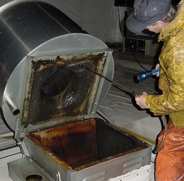 Commercial and Industrial Kitchens use sophisticated extractions systems to vent smoke, odours and steam away from the cooking area and ensure odours do not migrate to restaurants or adjacent non cooking areas. These systems accumulate large amounts of grease, oil and smoke residue. Consequently these systems require regular inspection and cleaning in compliance with local and international regulations in order to avoid the high probability of fire. Similarly, lint and dry flammable dust becomes accumulated in the laundry ducts which if left unclean can be a serious fire hazard. EPSCO Envirotech cleans all types and sizes of Kitchen Extraction systems to the American Standard NFPA#96 (National Fire Protection Association)