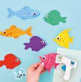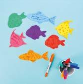 1. Pinġi xi forom ta’ ħut fuq karta vojta u qasqas il‑forom differenti tal‑ħut. Ittrejsja l‑forom tal‑ħut fuq folji kkuluriti tal‑fowm u qasqashom.