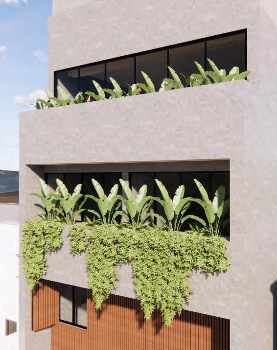 El proyecto es un edificio de usos mixtos desarrollado en un terreno compacto, donde se maximiza el aprovechamiento de cada nivel en sus cinco pisos, integrando un local comercial, oficinas y habitaciones destinadas al alquiler.