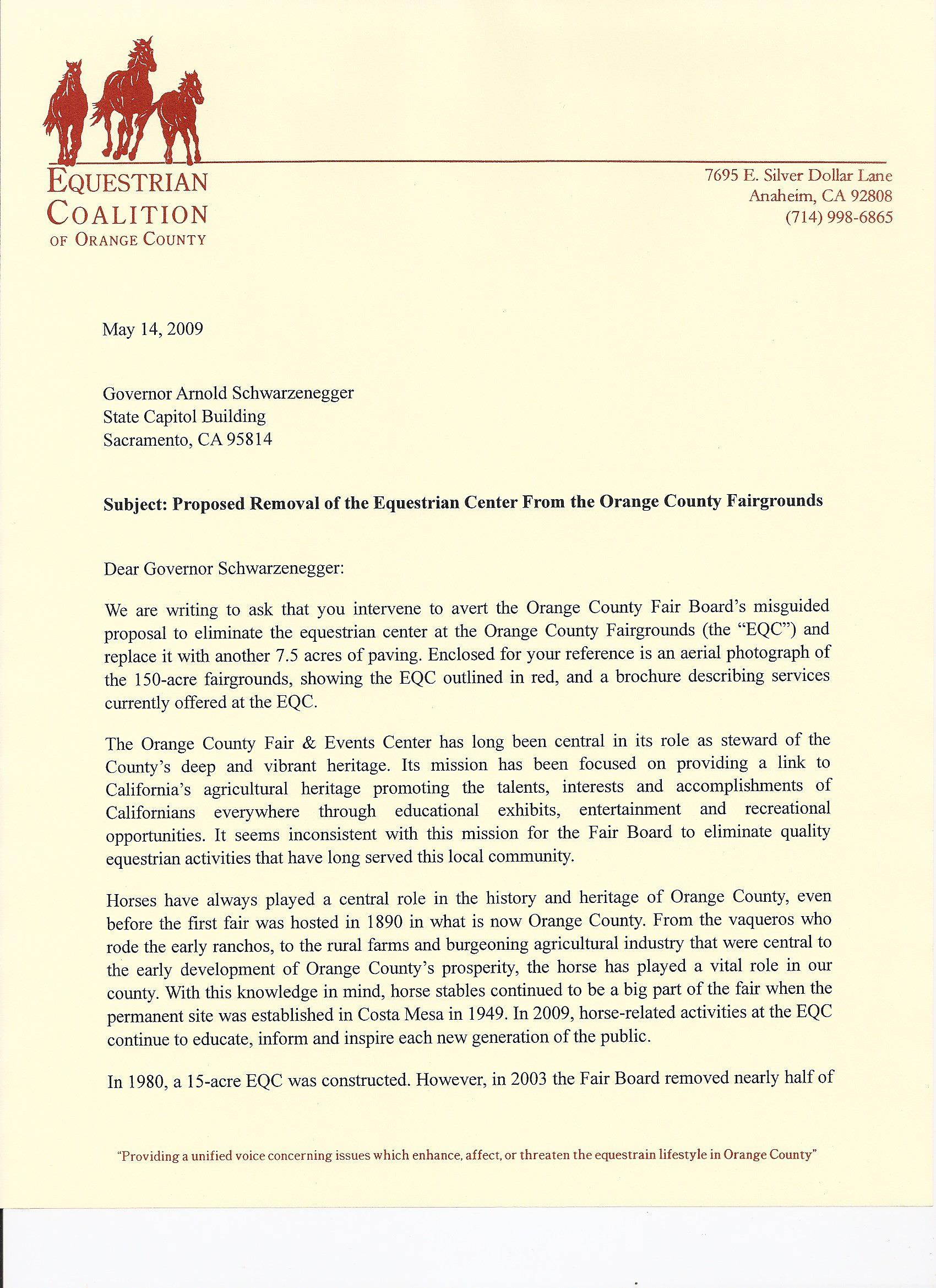The Network of California Fairs exists to enrich the lives of California citizens and they are public property. If you would like to help save the existing Equestrian Center at the fair please contact the Equestrian Coalition of Orange County at www.ecoc.org today!