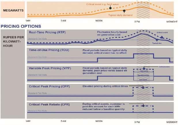 • Variable Peak Pricing (VPP): In this type, the prices are divided into three periods (i.e. off peak period, peak period and interim period. However, the price of peak period vary daily to reflect system conditions and costs. Other period prices do not change daily.