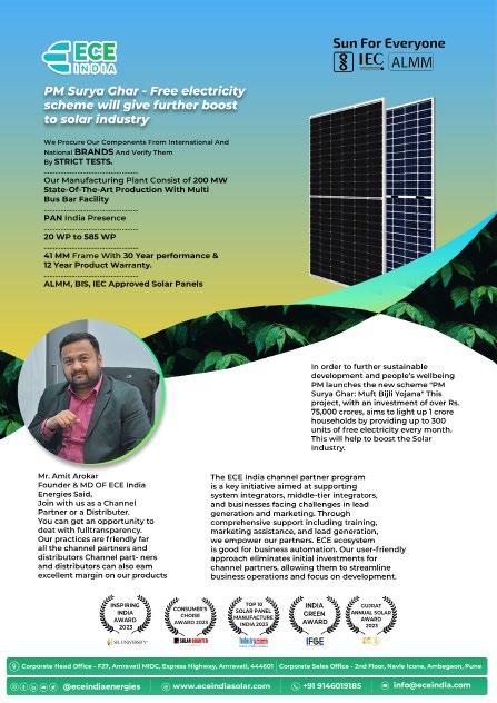 www.EQMagPro.com 73 EQ FEBRUARY 2024 www.renewx.in SOLAR I ENERGY STORAGE I E-MOBILITY I CHARGING INFRA I BIO ENERGY FOR SPACE BOOKING FOR SPEAKERSHIP OPPORTUNITIES : AMIT SHARMA | M: +91 99109 55222 | E: amit.sharma@informa.com AMITAVA SARKAR M: +91 93792 29397 E: amitava.sarkar@informa.com JULIAN THOMAS M: +91 99404 59444 E: julian.thomas@informa.com IYER NARAYANAN M: +91 99673 53437 E: iyer.narayanan@informa.com HIGHLIGHTS INDUSTRY AWARDS EV & INFRASTRUCTURE ZONE BIO ENERGY MULTIPLE CONFERENCE TRACKS MEGA PRODUCT SHOWCASE CEO CONCLAVE PROFILED BUYERS FROM C&I SEGMENT GREEN HYDROGEN REGISTER NOW BOOKINGS OPEN PREMIUM SOLAR ONSITE BRANDING PREMIUM PV INTERCONNECT & BUSSBAR PARTNER VISITOR BAG PARTNER BADGE PARTNER ALMM MODULE PARTNER PREMIUM EXHIBIT PARTNERS