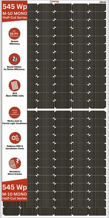 GM: Gautam Solar is a reputed Solar Module Manufacturing company with 25+ Years of experience. With a strong R&D unit, our company is known for taking out cutting edge solutions for the solar industry and our numerous IPs (Designs & Patents) is a testament to our commitment to innovation. In terms of Product, our 545 Wp Monocrystalline PERC Solar Modules adopt advanced technologies like bigger M10 cells for higher power generation, multibusbar technology for lower electrical losses, round ribbon connectors for better light utilization, bifacial PERC technology for power generation from both sides, non-destructive laser-based cell cutting for higher reliability and lower chances of micro-cracks and half-cut cell technology for better low-light performance. Speaking of Processes, our modules are manufactured using First-Hand Topline Machines and undergo rigorous testing and certifications, making us one of the few solar module manufacturers in India with BIS & ALMM Approved Solar Panels.