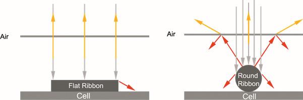 Flat ribbon provides low light utilization as most of the light falling on the ribbon is reflected back outside the module and only 5-10% light is reflected inside and converted to electricity.