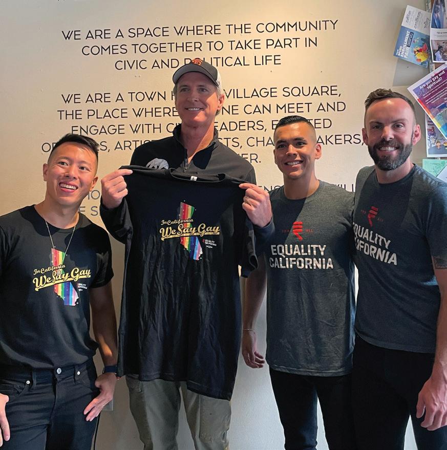 During the coming year, protecting our longstanding and hardfought LGBTQ+ rights and protecting LGBTQ+ youth will be a large focus for us. We plan to monitor and confront school boards in California that introduce policies attacking transgender and non-binary students, secure same-sex marriage by removing Proposition 8’s hate-filled language from our state’s constitution and sponsor legislation that moves the needle and improves the lives of all LGBTQ+ Californians.