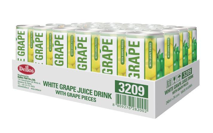 POMEGRANATE JUICE DRINK GRAPE JUICE DRINK ���ml X �Cans/ctn ���ml X �Cans/ctn MANGO JUICE DRINK ���ml X �Cans/ctn ���ml PACKAGE INFORMATION ���ml PKG ���ML X �CAN/CTN [�,���CTN/��FT] SIZE ���ml UNIT � CBM �.�� WEIGHT[KG] G.WT N.WT �.�� � W L H DIMENSION[MM]/CTN ��� ��� ��� H DIAMETER BOTTLE & CAN DIMENSION[MM] ��.�� ��� Q’TY �,��� UNIT CTN TYPE PACKING Shrink Wrapping BANANA JUICE DRINK STRBERRY JUICE DRINK � FOR A BETTER WORLD WITH TASTY DELLOS! Made in k o r e a ���ml Fruit Juice Drink SHRINK WRAPPING �-PACK TYPE
