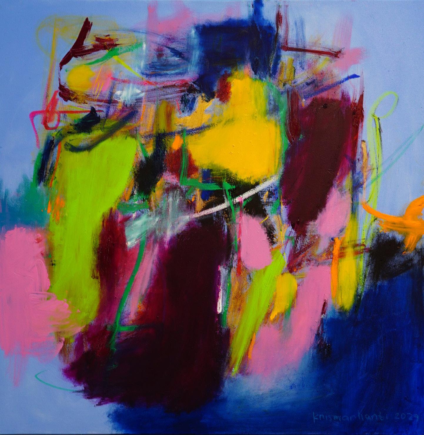 Kris expresses ‘questioning moments’ in deep words and spontaneous marks on her paintings. Both her writing and paintings have a solid connection with her emotional experiences. It is passionate, energetic, and mesmerizing.
