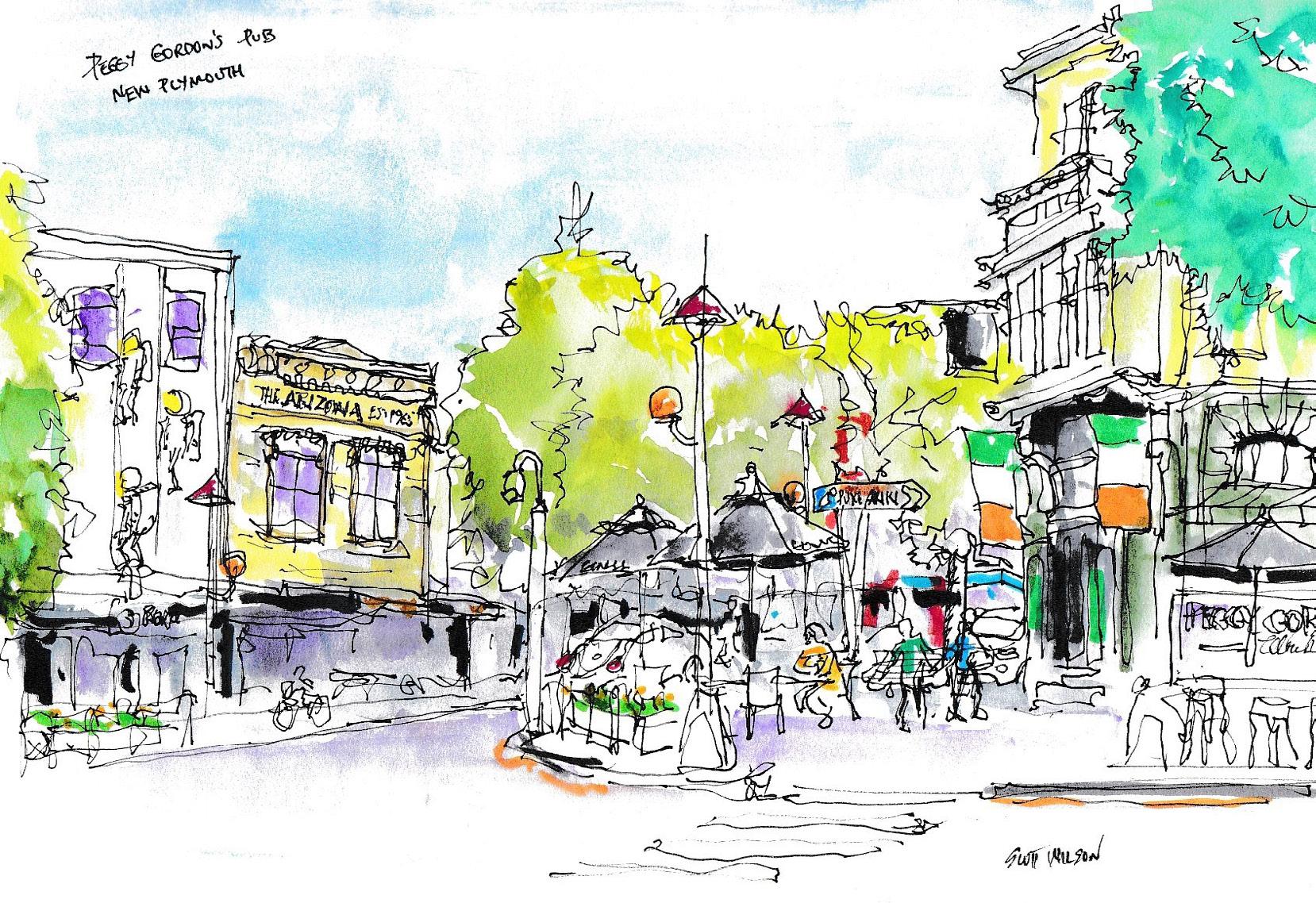 Fifteen years ago he founded a Taranaki group that has morphed into ‘Urban Sketchers Taranaki’.