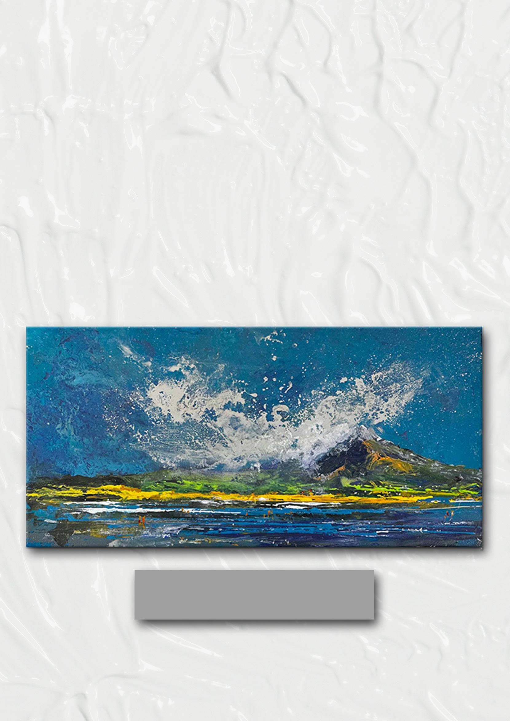 I always paint with music on as it affects the way I paint. For this piece I used the beautiful soulful newer music from the Norwegian band A-ha. My grandmother was Norwegian and I felt their story related to my journey to New Zealand. The connection and similarities of the wild rugged coastlines and the people who lived by the sea.