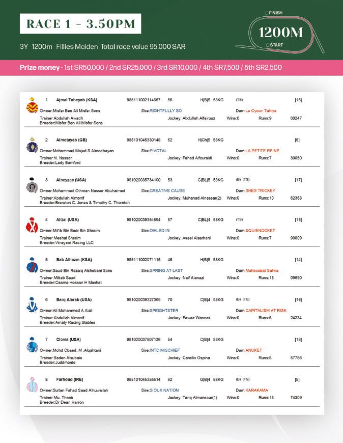 Trainer:Reyaan Alibrahim Breeder: Jockey: Adel Alfouraidi