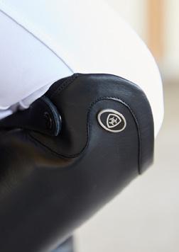 TLJ kids’ jods are sure to get your kids excited about heading to the barn. Made from an athletic fabric with sticky silicone knee patches for grip, and tie-downs for boots, these jods are ready for practice or Academy level riding. Available in four sizes and two lengths in black. $99.