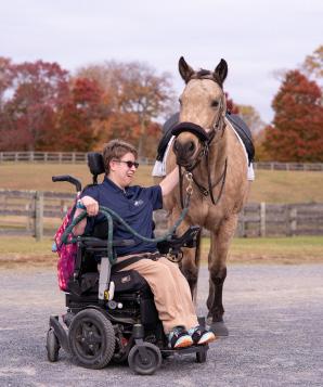 She was briefly shown in Western pleasure, but her owners quickly recognized that while Chrissy had a true heart of gold, the Western pleasure world wasn’t the best fit for her. Believing she could make a greater impact in a different role, they sought out a place where she could truly shine. Chrissy arrived at Maryland Therapeutic Riding in December 2008, beginning her journey of service and impact in equine-assisted programs. Chrissy is an important member of the center’s “Reinbow Ride” program, which gives individuals who have received a terminal diagnosis the opportunity to ride or spend time with horses.