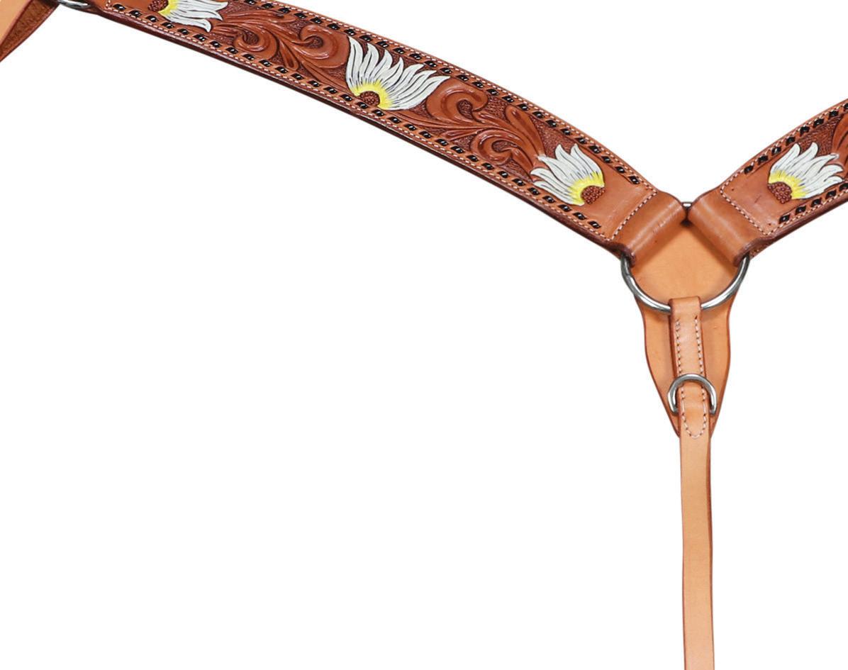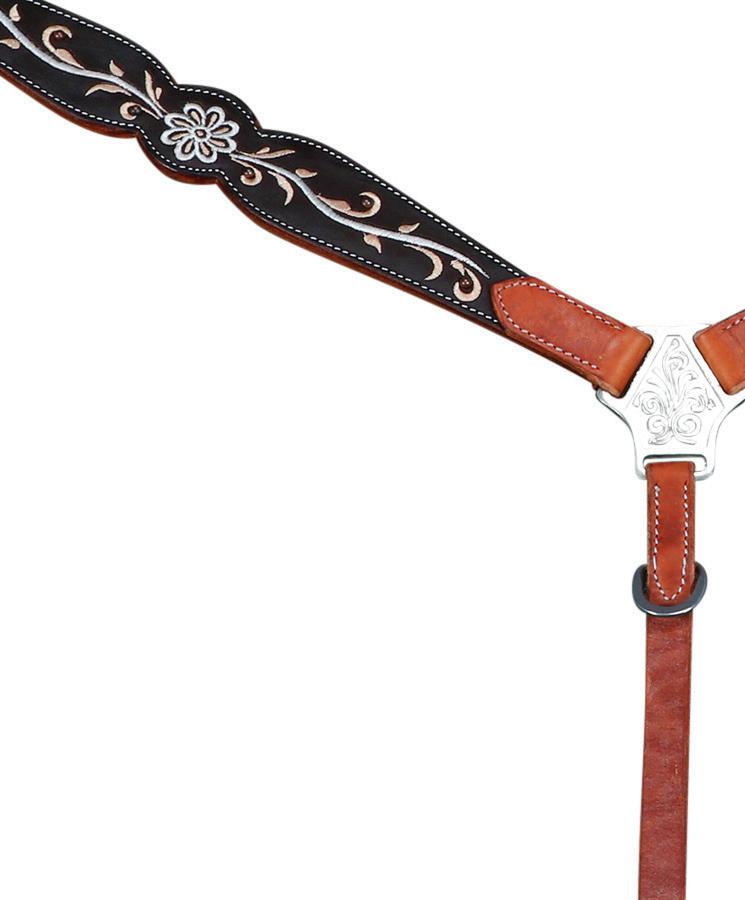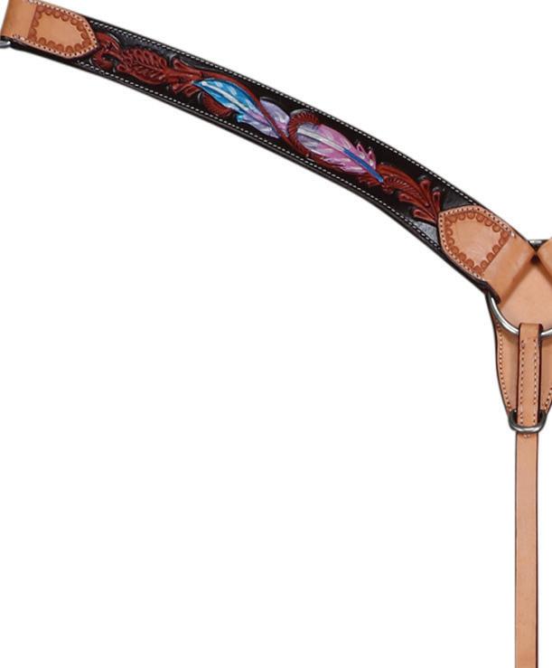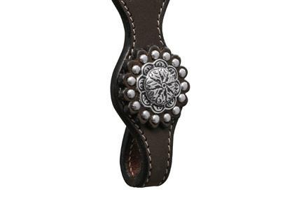 unique characteristics and texture along with quality fittings. The Fort Worth Floral Concho is available in Headstall, one-ear headstall, breastcollar and split reins.