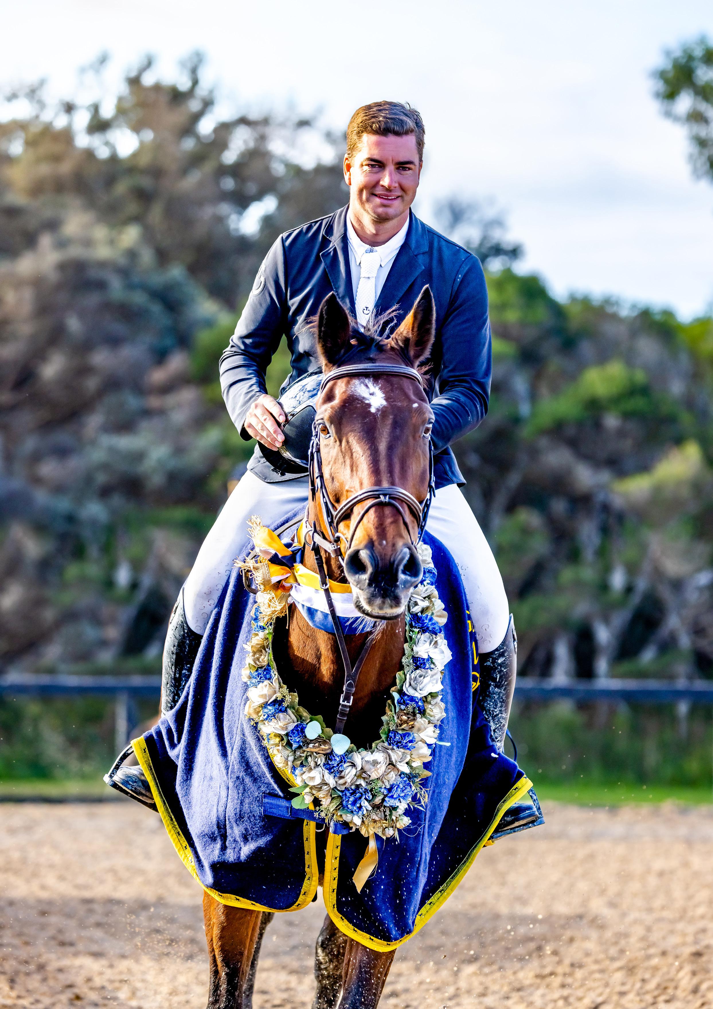 Tom McDermott and Warraleigh Park Cortez, winners of the recent Martin Collins Grand Prix (Image by OneEyedFrog Photography).