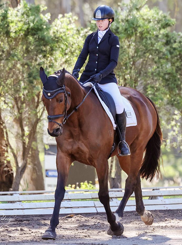 Samantha Cesnik and Giovanni Georgio came took 1st place in the CCN1*-S** Open. BELOW: Ashley Clarke and Royal Symphony triumphed in the New Star Led Thoroughbred Class