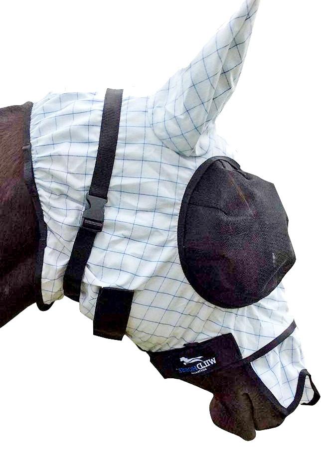 Made from 90% UV Tough Mesh, the Buggez Bugeyes fly mask is polyester coated and UV stabilised. Horses sensitive to wind, dust and UV or who have recurring weepy eyes will benefit greatly from the tough mesh protection. This higher rated mesh is recommended with the treatment of eye ulcers, lesions, scratches, and Uveitis, and is well suited to horses and/or environments that are harsh on fly masks.