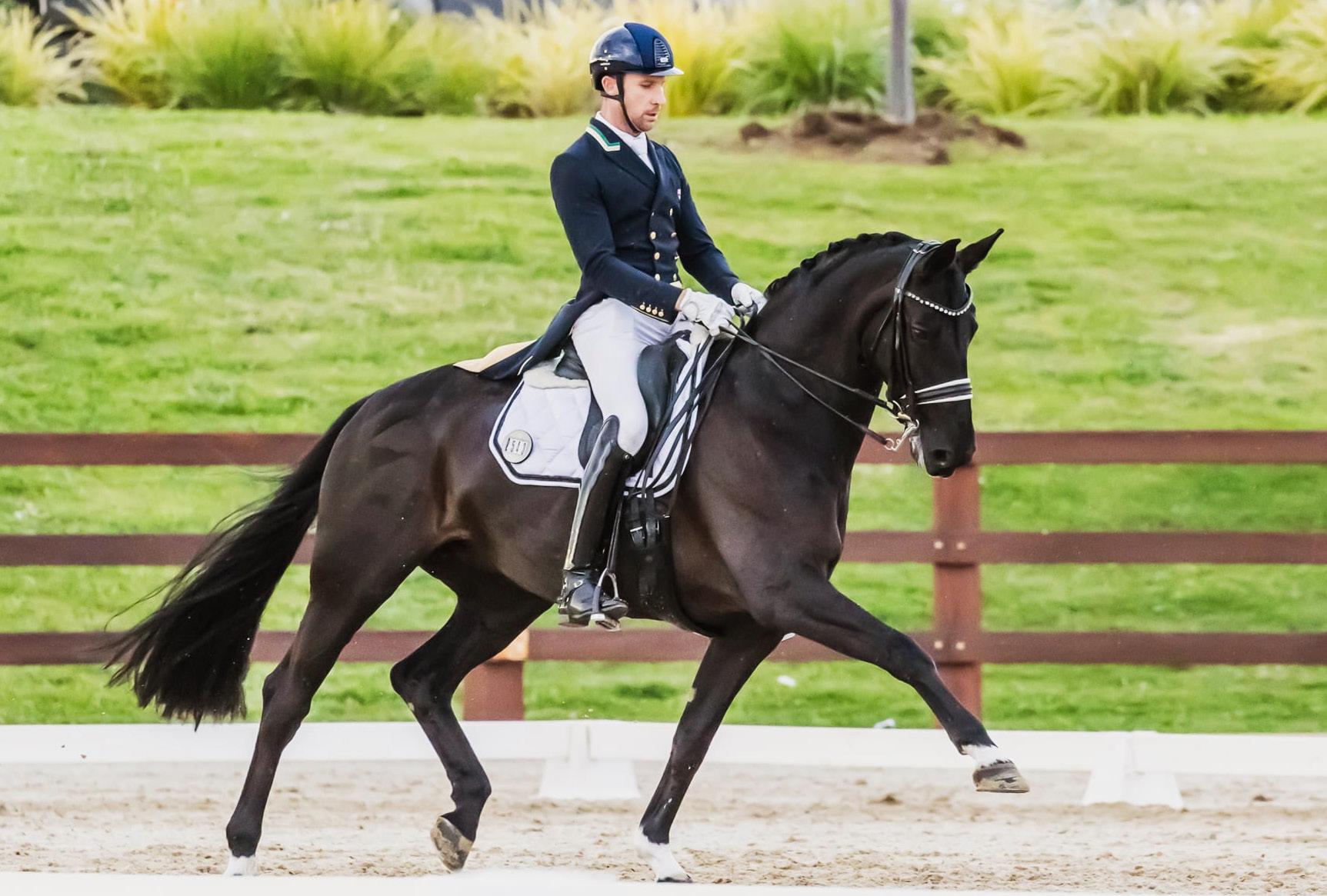 The effectiveness of the rider’s aids is demonstrated in the fulfilment of the test movements, with an overall uniformity between horse and rider.