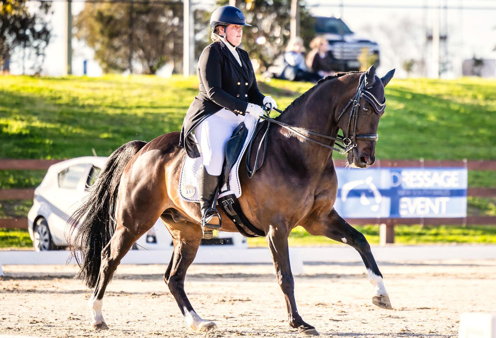 ABOVE & LEFT: Proof that patience and perseverance pay off, Nicole and Everdeen were Open Elementary Champions in the 2025 Regency Floats NSW Dressage Championships last month (Images by Sue Crockett Photography).