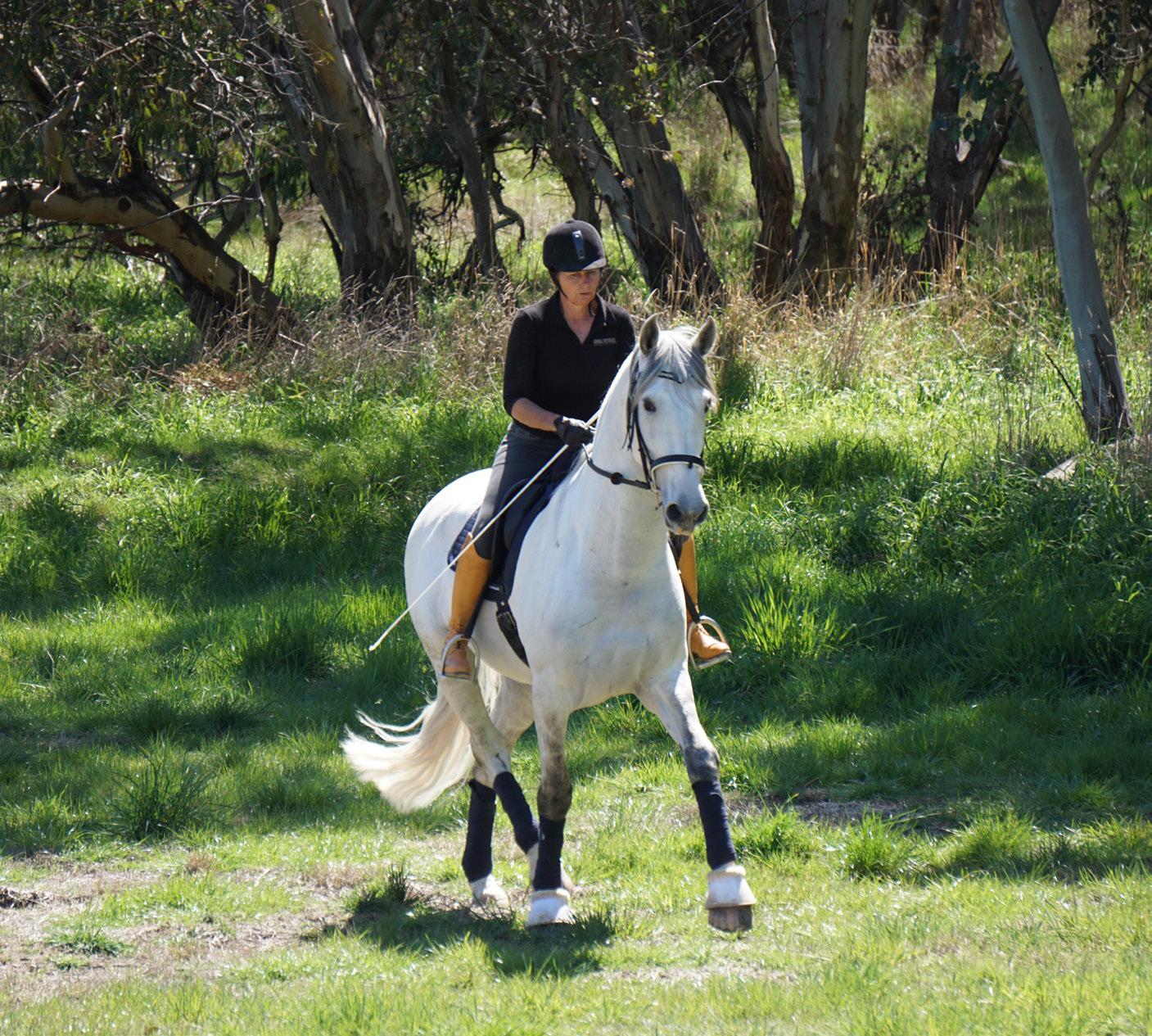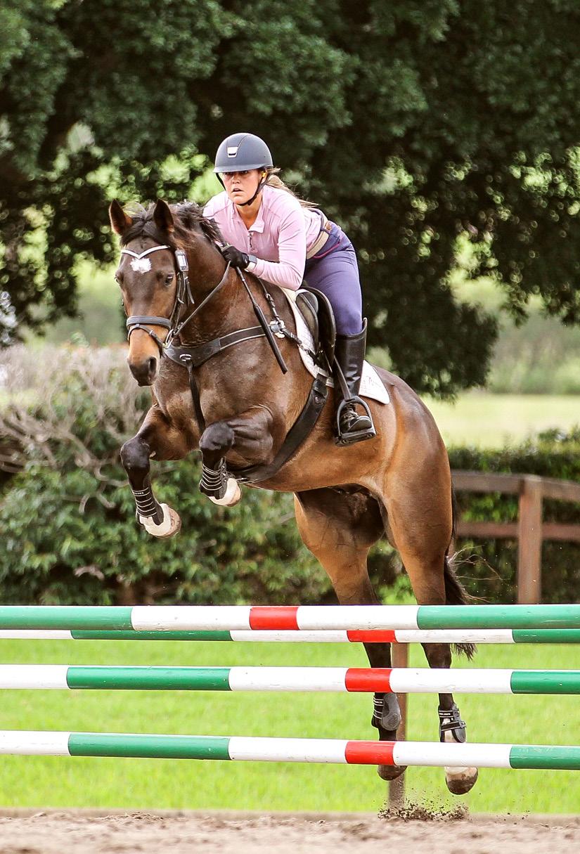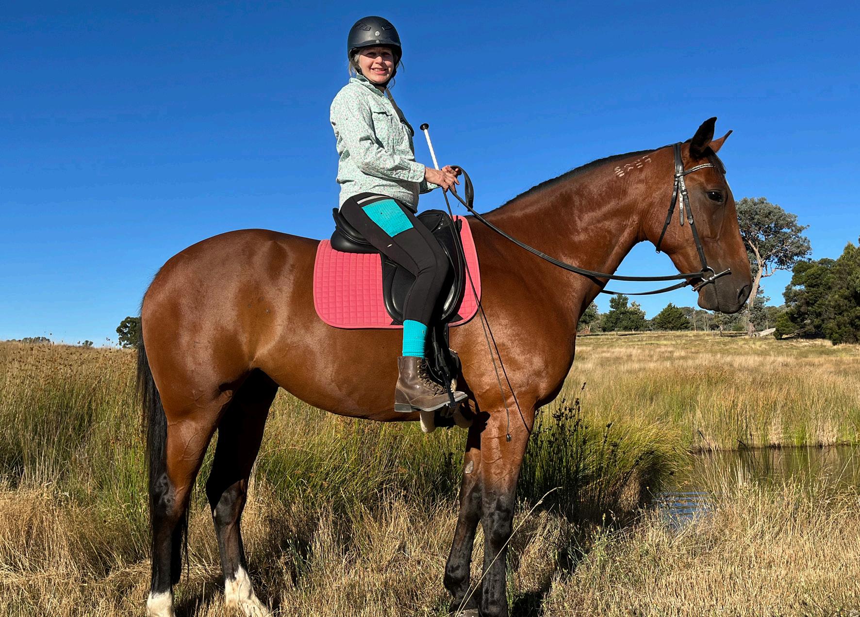 fence, because when you’re cantering a fence, there are two pairs of eyes on the fence, or in my case, one and a half pairs, because I’ve only got one eye,” she chuckles, “but the horse isn’t looking to judge a distance to a pole, so it’s always a little more difficult to ride it. It’s good practise, you’re not going to scare a horse cantering over a pole or cavaletti, and the rider is going to make themselves better at picking a smooth distance.”