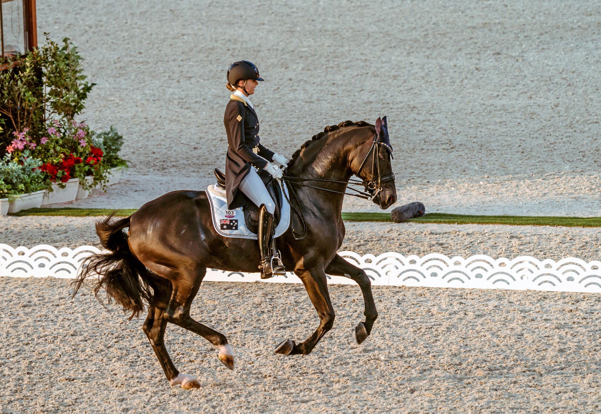 Following the 2019 sale of her Grand Prix ride Scolari to Japan, she took up the ride on Gestüt Sprehe's 14-year-old black Hanoverian stallion Destano. It didn’t take long for the duo to become a formidable combination. After only a short time together they set, and currently still hold, all three Australian Grand Prix records, which earned them a berth on the team representing Australia at the Tokyo 2020 Olympic Games.