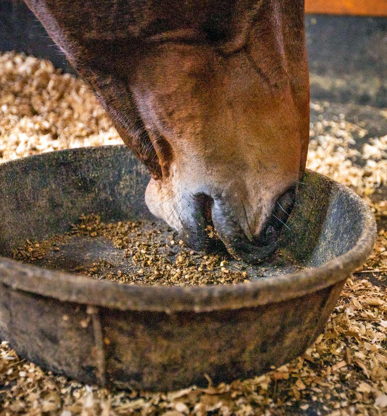 Non Pelleted: Horses spend more time chewing which stimulates saliva production and in turn buffers the stomach and protects it from ulceration.