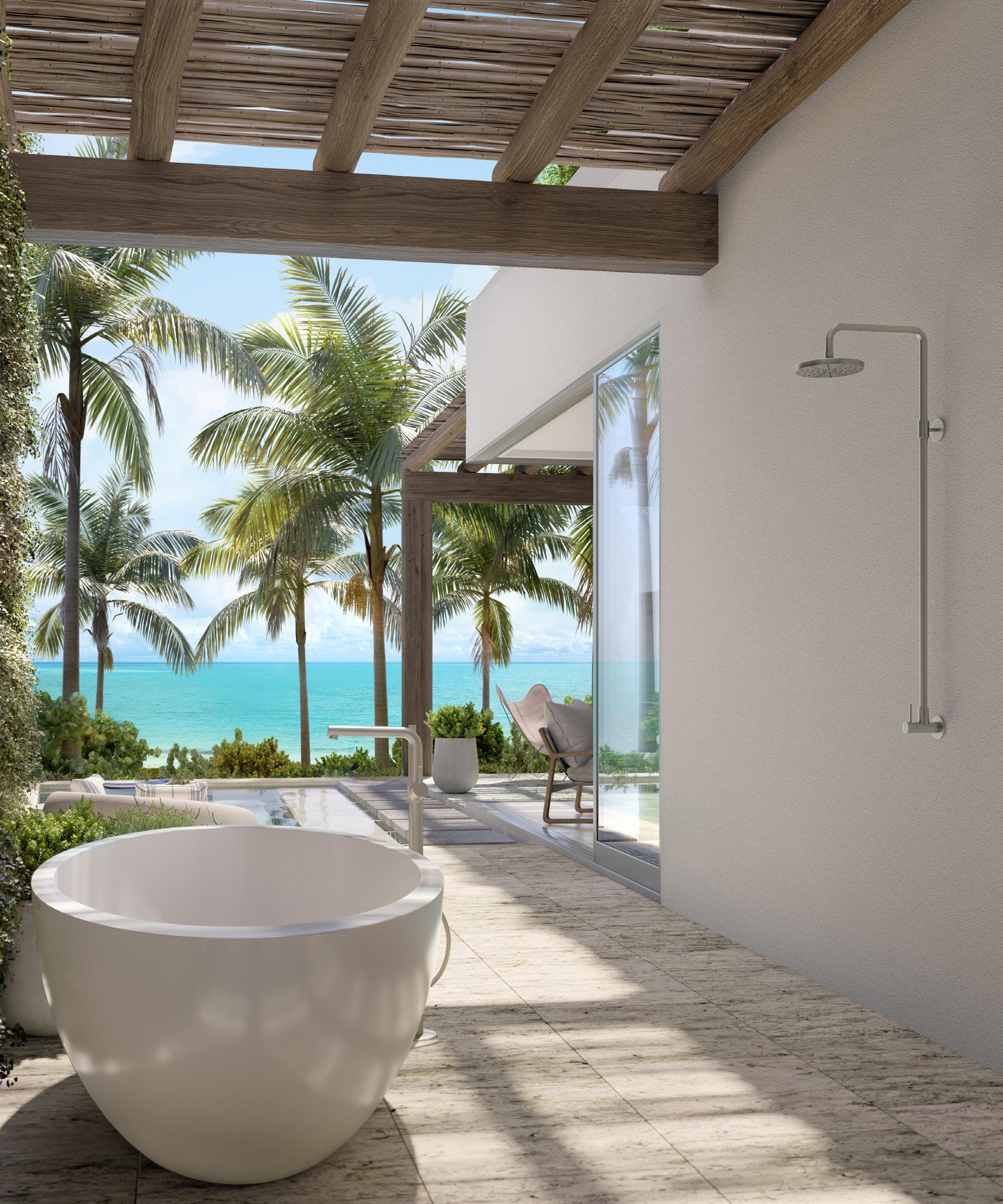 into a rental pool managed by The Strand. The new three-bedroom villas are great for owners looking to maximize rental income. Each villa is capable of renting as three separate lock-off suites each complete with three oceanfront bedroom suites directly overlooking the ocean with magnificent views.” Renters will have access to all the same resort amenities as residents, excluding access to the club boats.