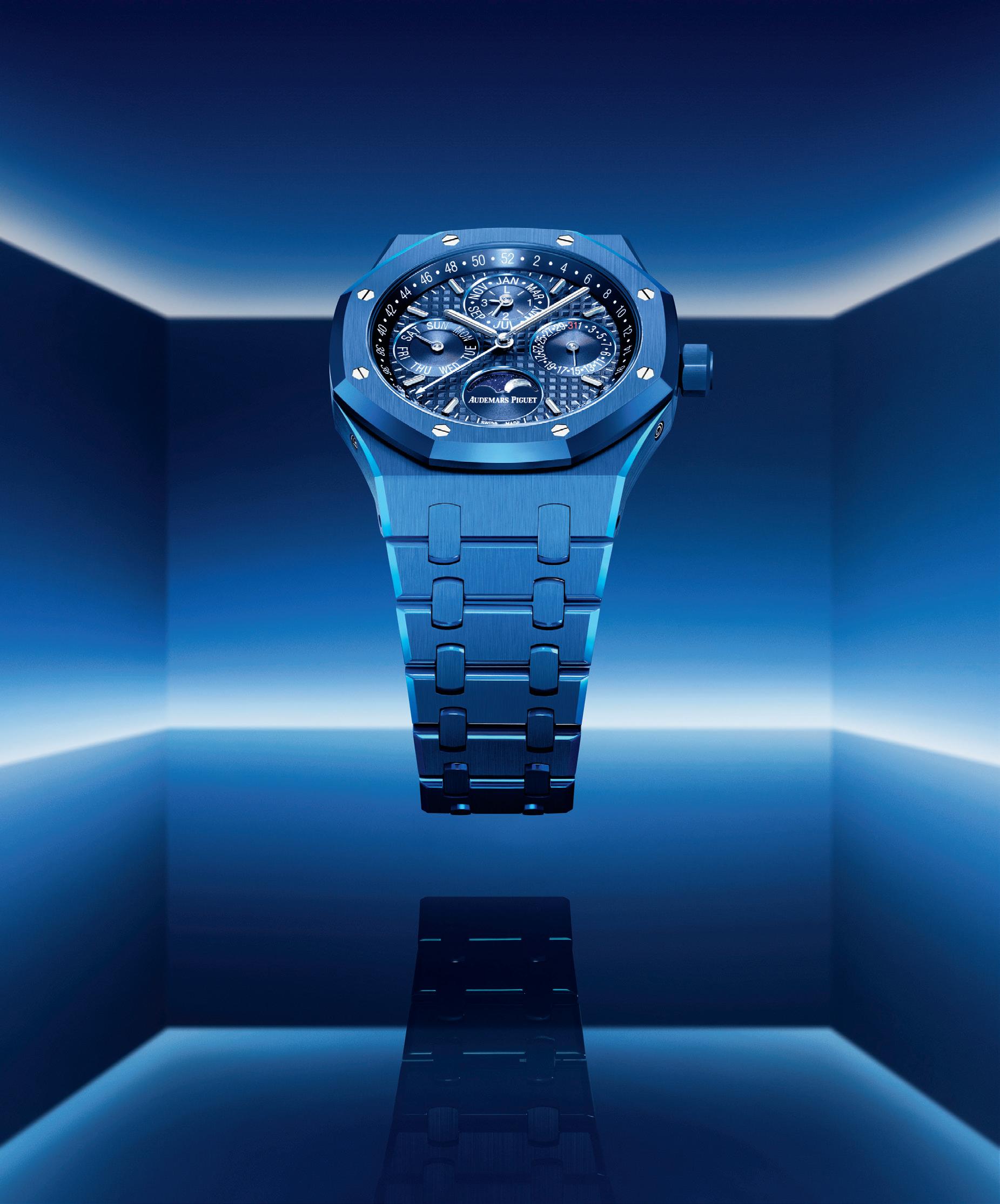 CHRONOS in blue ceramic (Ref. 26579CS. OO.1225CS.01) AUDEMARS PIGUET ROYAL OAK PERPETUAL CALENDAR AUDEMARS PIGUET RELEASES THE ROYAL OAK PERPETUAL CALENDAR IN AN ALL-NEW CERAMIC TURNING BLUE EQ. FALL 2022 equicapmag.com6