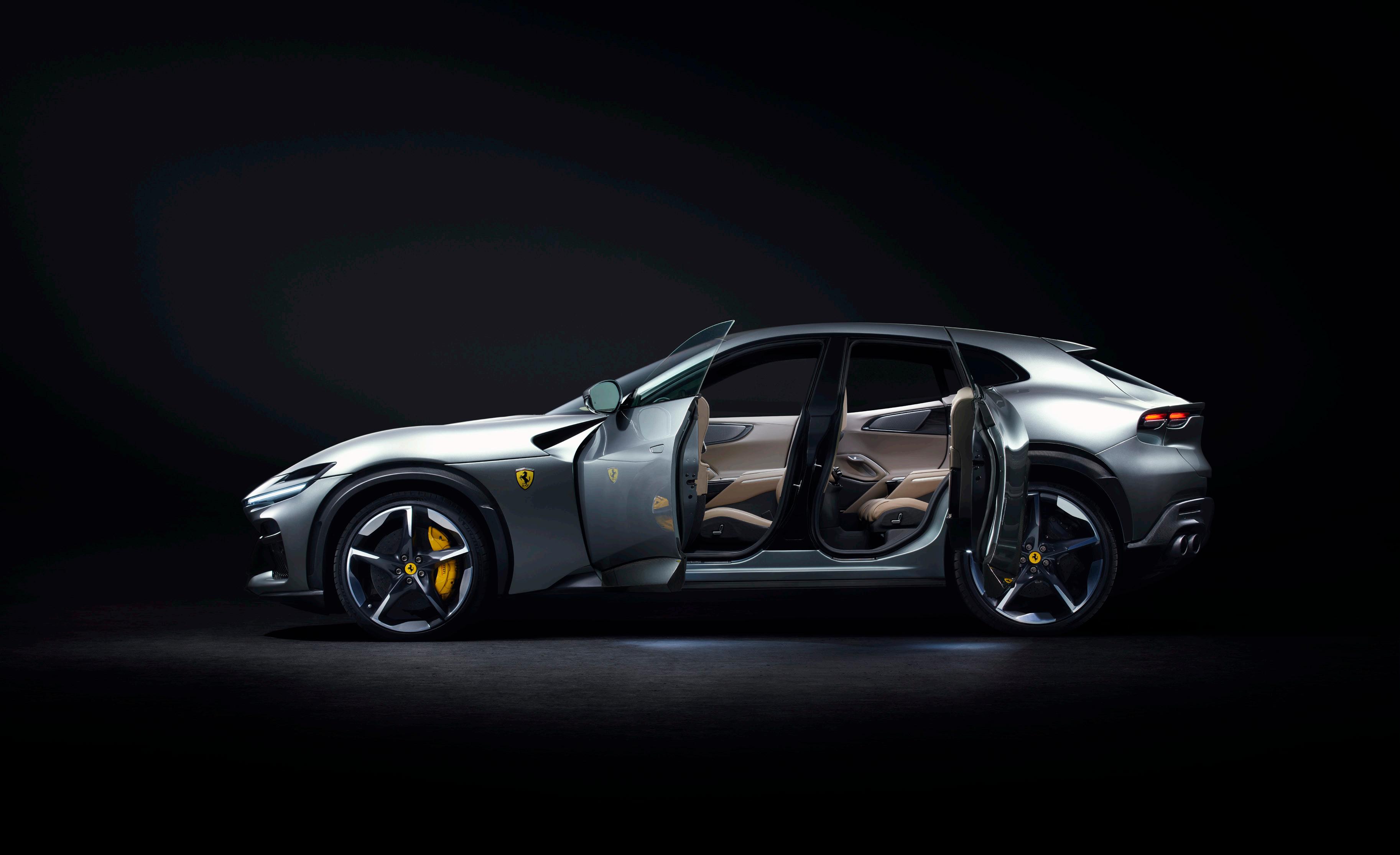 a leaf out of the Rolls-Royce style book by equipping the Purosangue with rear-hinged “suicide” back doors. Pull on a teeny, fin-like latch on the shoulder line and the rear doors power open with a near 90-degree swing.