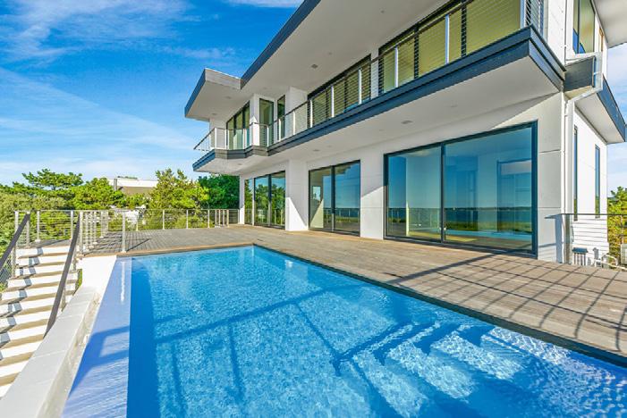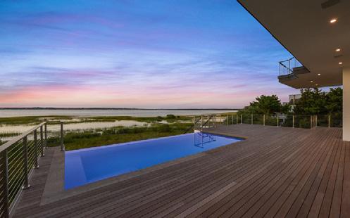 1471 Meadow Ln Southampton, NY Located on Shinnecock bay, and a short walk to the Hampton’s finest ocean beaches, this property features 3,372 Sqft of impeccable design with 4 bedrooms and 4.5 bathrooms. This modernized new construction is perfectly positioned to display expansive ocean and bay views through floor-toceiling walls of glass, outdoor terraces, and a flawlessly positioned bayside pool. The floor-to-ceiling Marvin Contemporary doors and windows enhance the open concept floorplan, while allowing unremitting natural light to flow throughout. The main floor presents 12.5’ ceilings, an entry foyer with a powder room and coat closet. Most importantly the great room, family room, dining room, and kitchen all boast unmatched water views. The spacious great room leads to a exquisite terrace with a custom pool, which effortlessly incorporates the waterfront landscape, as a unique extension of the interior space. The sizeable living room enhances to the entertaining opportunities with a beautifully constructed fireplace and wet bar. Concluding the main level is a luxurious junior master suite. The second level is fully equipped with 10.5’ ceilings, two guest suites, a lavish master suite, as well as private balconies. The spa inspired master bath is showcases a glass enclosed shower, dual sinks, as well as a free-standing soaking tub. While the stunning water views are truly noteworthy, this property’s location is undeniably idyllic.