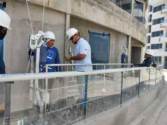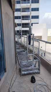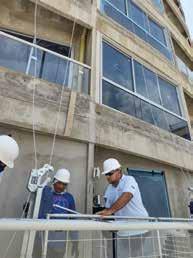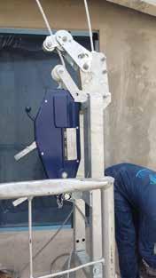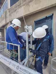 Lanzamiento andamio colgante certificado. Equipo para trabajo en fachadas el cual cuenta con un sistema principal para el desplazamiento vertical y un sistema de frenado independiente el cual aumenta la seguridad en los trabajos realizados en fachada, se realiza acompañamiento en de obra temiendo en cuenta que es un equipo nuevo para el personal.