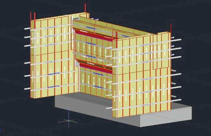 Se emplearon todos los elementos de la formaletería steelply, los cuales contribuyeron a la construccion de un elemento demasiado esbelto, con un volumen de concreto superior a 170 m3 y mas de 750 m2 de formaleteria
