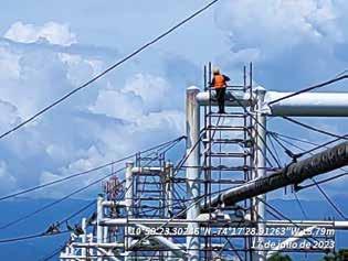 Construcciones y desarrollo urbano SAS. Porque es una solución de torre de Andamio Certificado anclado totalmente a la estructura o marco H, generando varias plataformas de trabajo y ampliación de la sección con voladizos de 3 y 1m, para realizar mantenimientos en las tuberías de gas y los marcos que la soportan.