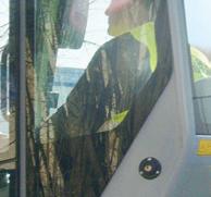 travel motions and swing. The large 25-cm high-definition colour touchscreen puts all vital machine and diagnostic data at the operators’ fingertips. A safer training environment is facilitated by unobstructed views of the digging environment and emergency stop button easily accessible from both training seats.