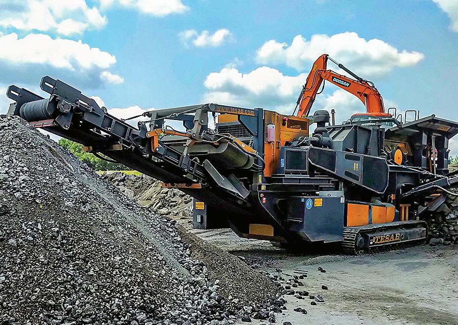 that tilts, a dust suppression system with pressure washer and hydraulically extendable tracks for ease of transportation and increased stability.