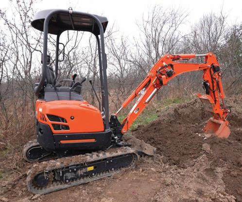 bolt-on cutting edge and an auto-level feature that helps prevent bucket spillage. Also, a heavy counterweight enhances the machine’s stability.