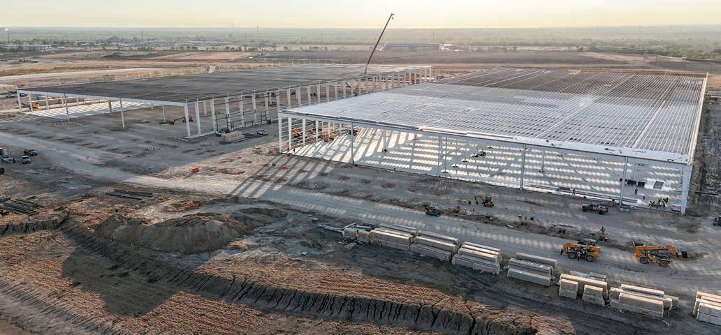With foundational work complete, vertical construction has now begun on the production and ofce buildings. Texas- based Joeris General Contractors is leading the next phase of development.