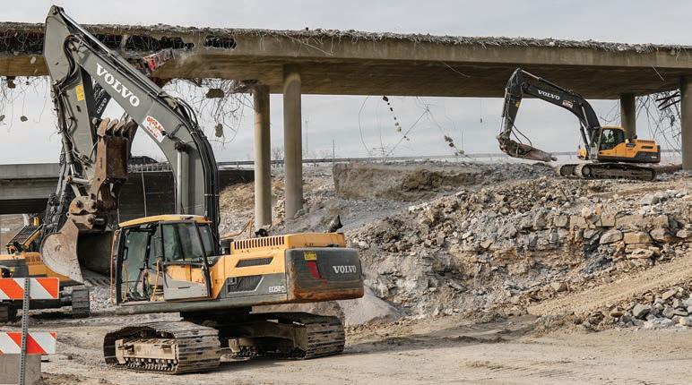 A great example is the cab. Demolition is tough work, so investing in excavators that feature comfortable cabs with intuitive controls is important to keep your operators alert and productive. You should also seek out brands that aim to minimize or even eliminate noise and vibration. at makes long days more tolerable. If you want to keep your crew out there working longer, you don’t want to put them in commodity-type machines that rough them up. A bit more investment up front can put them in safer, more durable machines, and the e ciency and added productivity over time can pay for that added investment. For controllability, choose machines that allow oper-