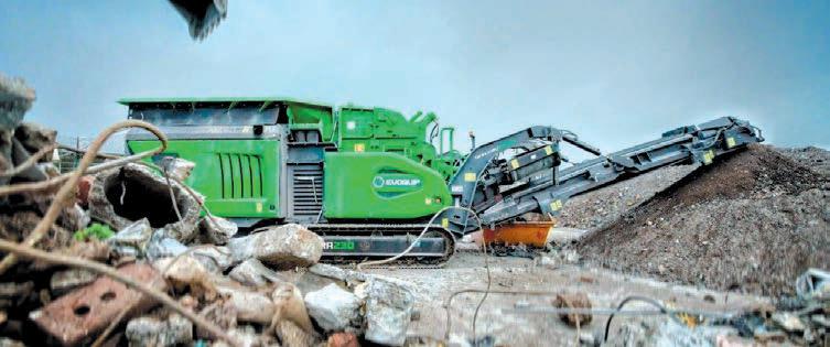 Double deck 11’ x 5’ screen, bolt in cartridge grizzly, highly fuel efficient direct drive system. Excellent reduction and high consistency of product shape in recycling, demolition and quarry applications.