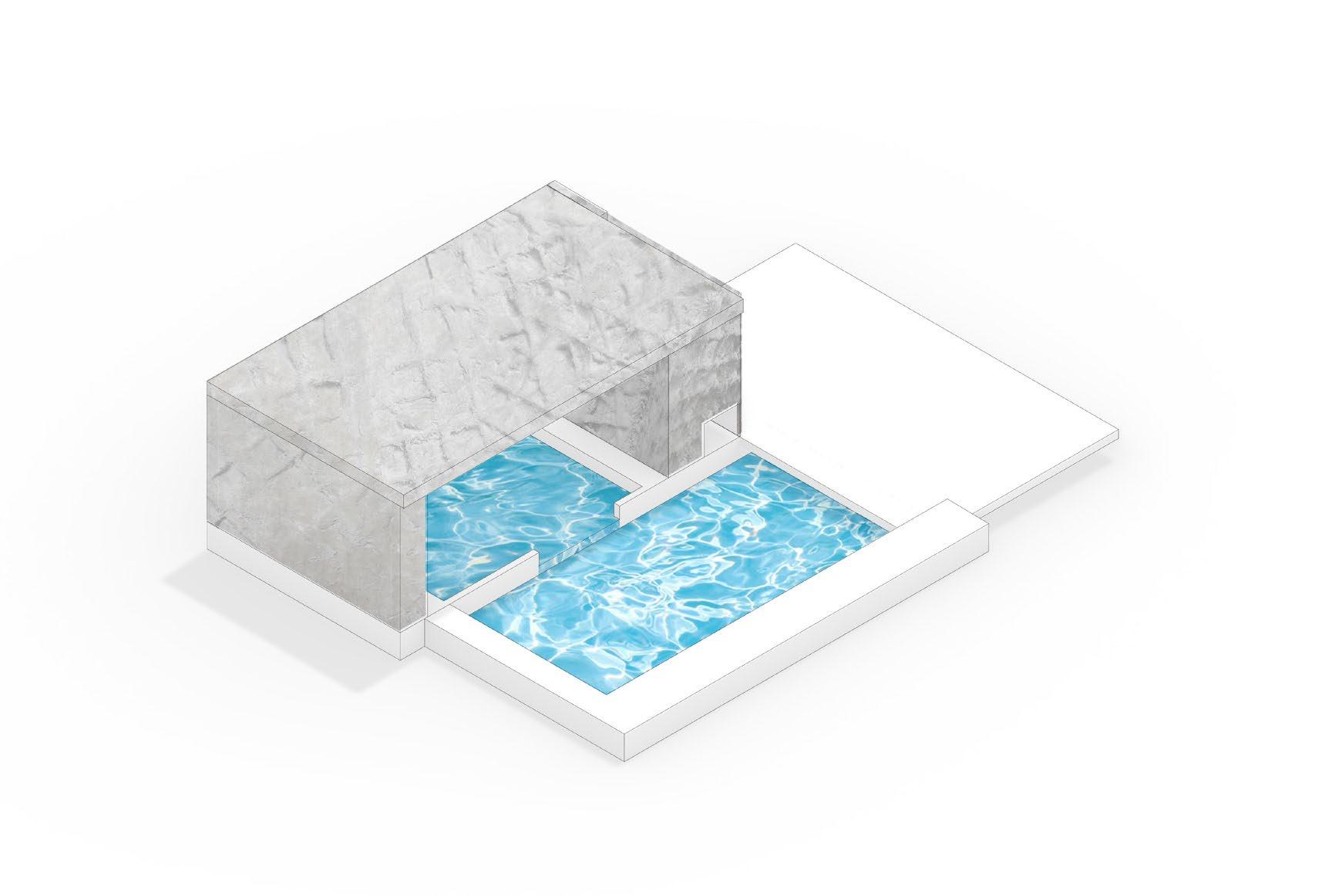 Rock Water Waffle Axon Series. Axonometrics depicting progression of structure relationships.