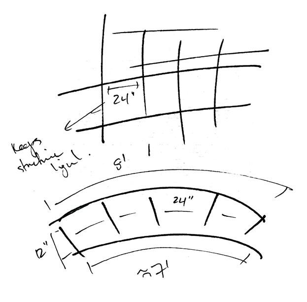 foundation, water, enclosed rock, waffle columns, floor structure, floors