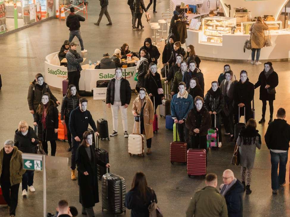 Ponad 30 osób zastygło na Dworcu Centralnym – to druga kampania społeczna